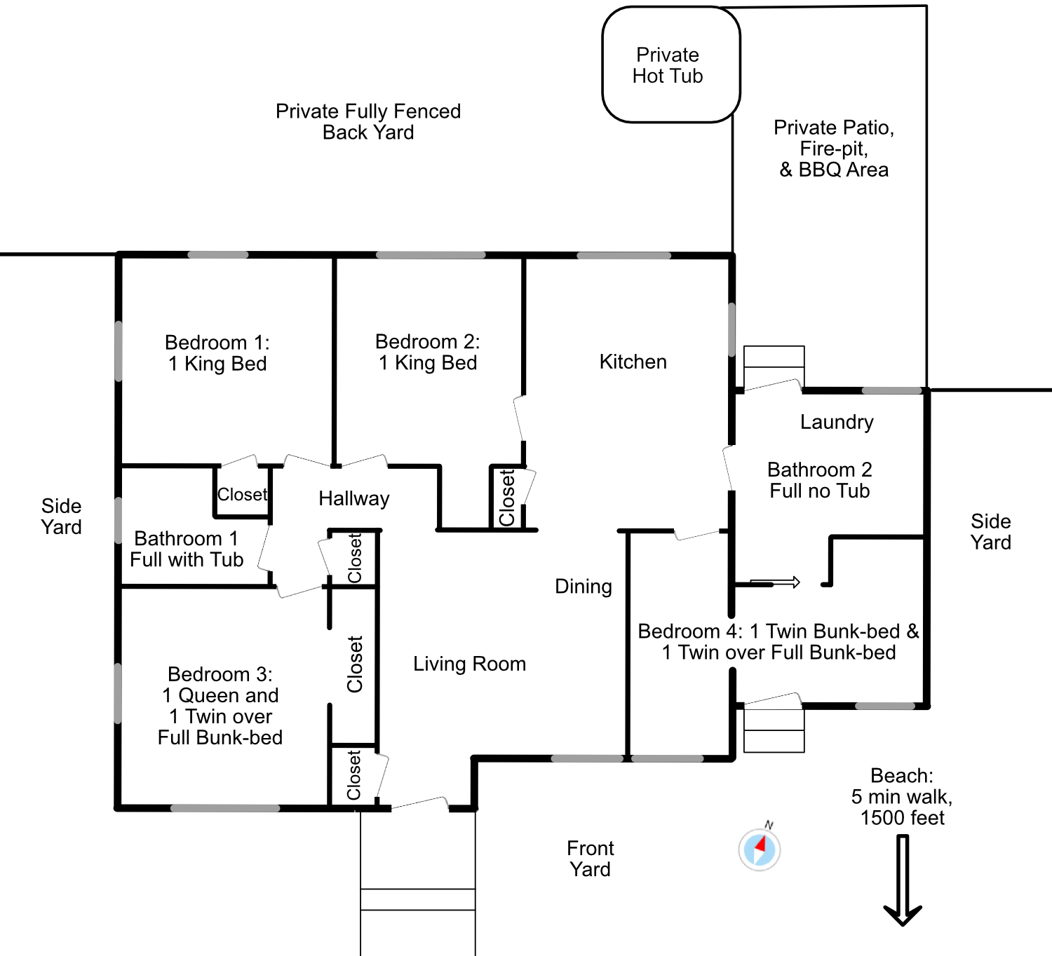 First off, apologies for such a long list of strict rules and thank you for your understanding that these rules must exist due to prior experiences with a few bad guests. In other words, we usually don’t apply these rules as strictly as they sound but we must maintain the right to protect the property. - LIABILITY: All guests agree that the owner, property manager, and all property staff shall not be liable for any damage or any injury to: any guests, to any other person, or to any property occurring anywhere on the property premises. All guests agree to hold the owner and all property staff harmless for any claims for damage, no matter how caused including but not limited to vandalism, theft, or any property malfunctions. - NO SMOKING. There is a $300 penalty for smoking inside. You may smoke responsibly in the yard. - No events, parties, or large gatherings! Small celebrations are okay, but DO NOT exceed property capacity! - Must obey all federal, state, and local laws including but not limited to underage drinking! - YARD: Additional fees will apply if we find cigarette butts, bottle caps, pet poop, or other trash in the yard! - FURNITURE: DO NOT move furniture or game tables as this can scratch the floor and/or damage the items - GAMES: After using any games, clean them up and put them back to where you found them. - HOT TUB: DO NOT bring drinks into them. DO NOT smoke inside them. DO NOT add soap into them. Shower and wipe/rinse off sand and any oils prior to entering them. No pets allowed inside the hot tub. Swim and use at your own risk. No DIVING. No RUNNING near the hot tub! - HOT TUB COVERS: If a cover exists: Recover after each use to help maintain performance, temperature, and water levels. Do not climb or sit on any covers. Broken covers are billed at cost of roughly $700! - LINENS: Do NOT remove bed sheets! Place dirty towels directly into the laundry hampers instead of floor. - DISHES: Please wash and put away all dishes prior to departure. There will be a $100 fee for numerous unwashed dishes, pots and/or pans. - GREASE: Do NOT dump grease down sinks or drains! Grease can lead to clogged drains and additional fees! - LAUNDRY: Washer: Only use laundry detergent! Remove sand prior to washing items: excess sand found inside washer or dryer will incur additional charges. Dryer: Clean lint trap before every load of laundry! - TOILETS: Do not flush anything other than toilet paper down the toilets! Absolutely NO wipes in toilets! - SAND: Wipe off sand and rinse feet outside prior to coming into the house! - EATING/BEDS: Do NOT eat in beds. Please only eat in designated dining areas. - FIRE PIT (outdoor): Any fire MUST BE SUPERVISED at all times. ONLY store purchased wood purposed for fire pits can be placed in the firepit. Prior to leaving the firepit you MUST use water to completely put out the fire. - LOCKED AREAS: Are strictly off-limits. - GRILL: The grill Is charcoal and foil is recommended! Must be used outdoors, AND at least 6 feet away from the house, AND NOT under any tree branches. After use, CLEAN, cover, and return the grill to where you found it. You will likely have to purchase your own charcoal, lighter fluid, and lighter/matches. - There will be additional charges for any grill left unclean or in unsatisfactory condition. - PROPERTY ITEMS: All items brought outside MUST be promptly returned back inside after use to avoid deterioration from the weather. Anything other than towels, beach chairs, ice chests, boogie boards, and outdoor games are NOT to be taken out of the property (not to the beach nor other properties). If any items are taken out of the property then they must be returned or the cost + fees will be charged. - PETS: Each pet requires an additional non-refundable deposit that must be PAID PRIOR TO CHECK-IN. Pets must be well trained and are not allowed on any furniture (beds, couches, etc.). Further, you must clean up after your pets. We STRICTLY FORBID any pets, regardless of the type or breed, that any owner knows, or should have known, has attacked, bitten, or otherwise caused ANY injury to ANY person. - ROOF: Guests are strictly not allowed on the roof. A $1,500 fine will apply to any guest who climbs on roof. - Immediate eviction without refund will occur if there is: any violation of the house rules; excessive noise; excessive trash; or any actions that create a nuisance to the community - We cannot predict construction plans in the area and therefore there will be no refund considered for any nearby construction nuisances. - Even the best equipment, appliances, HVACs, internet, TVs, etc. occasionally malfunction. We guarantee to do our best to correct any issues ASAP but any failure does not entitle the guest to a refund. - The cleaner takes before and after photos and any missing or broken items are charged at cost + greater of: $25 or 20% of the item cost, if unreported. If missing or broken items are reported, the guest will only be charged at item cost or possibly even have the cost waived. Please report any damages that occur to the guest contact. - This is an Innkeeper agreement meaning all guests must declare: 1) they have a separate primary home address, 2) their intention of staying is for transient purposes only, and 3) they will not establish landlord/tenant relations but instead only an owner/guest relationship.